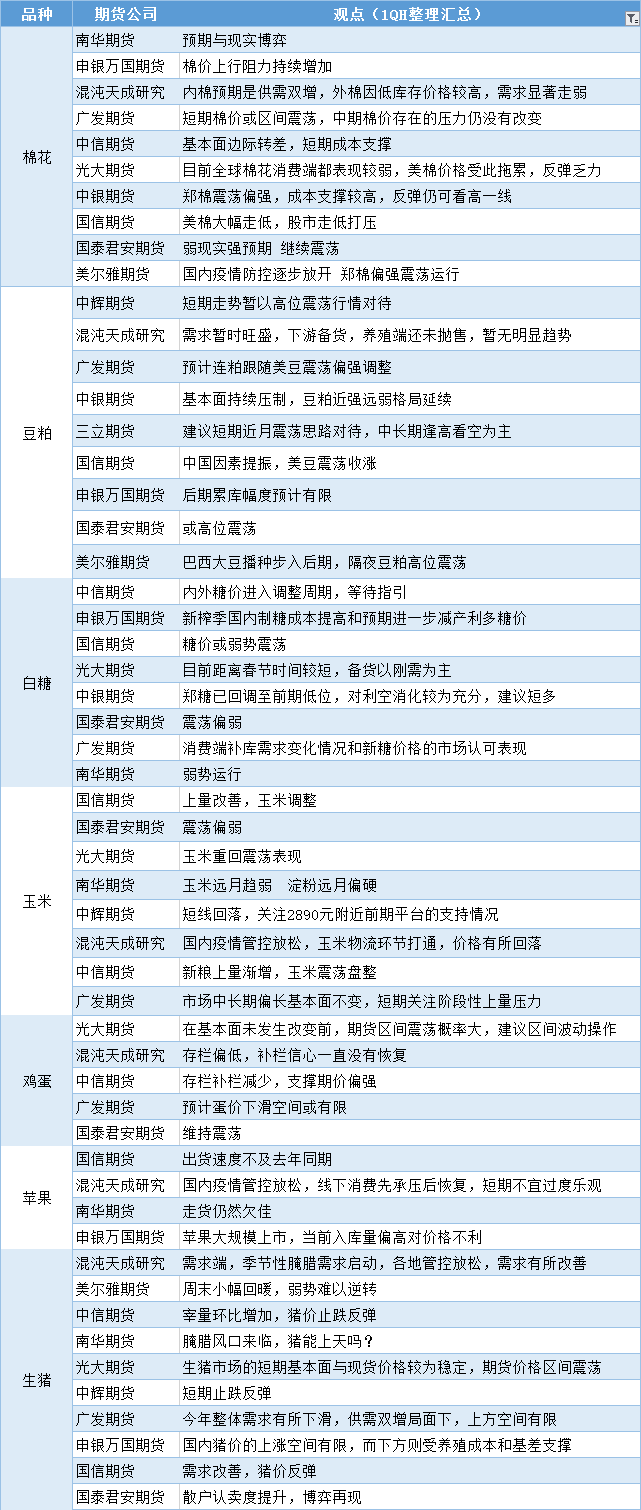 汇通财经APP讯——期货公司观点汇总一张图:12月5日农产品(棉花、豆粕、白糖、玉米、鸡蛋、生猪等)