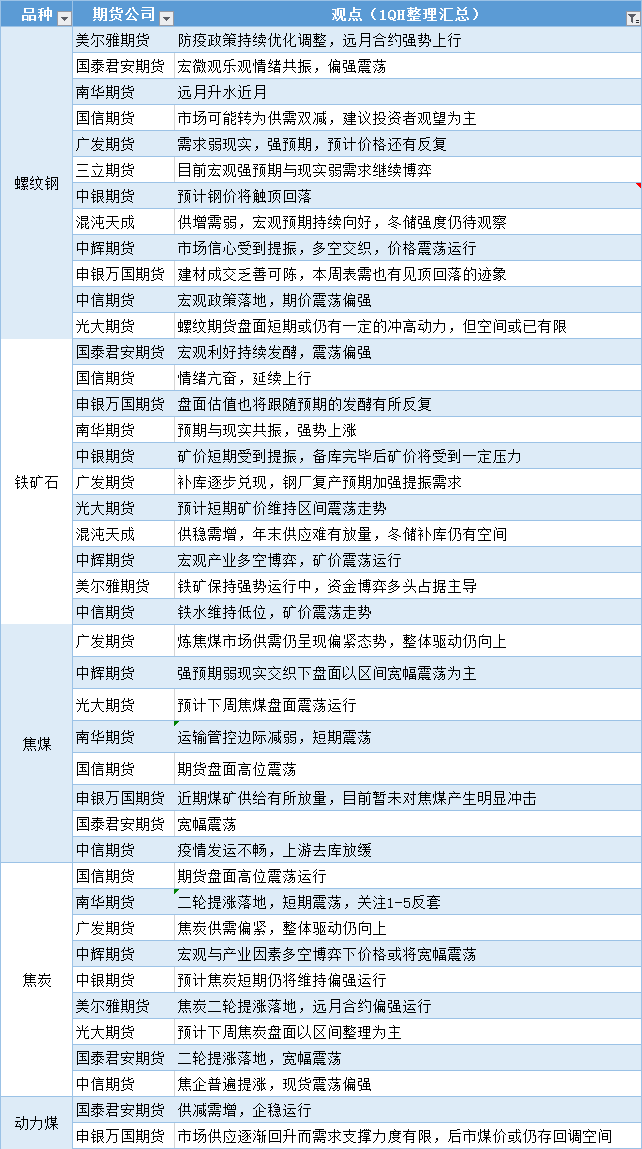 汇通财经APP讯——期货公司观点汇总一张图:12月5日黑色系(螺纹钢、焦煤、焦炭、铁矿石、动力煤等)