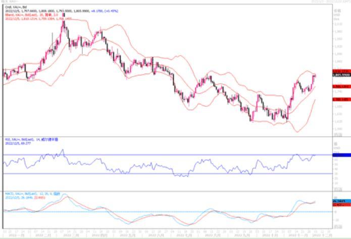 汇通财经APP讯——周一(12月5日),国际金价触及7月初以来新高至1809.85美元/盎司,1810美元附近面临技术性阻力。尽管美国就业数据强劲,但市场仍预计美联储将放慢加息节奏,以便实现经济软着陆...