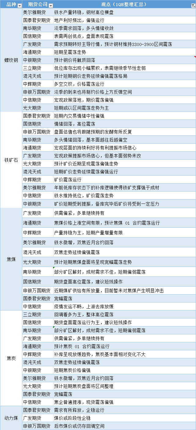 汇通财经APP讯——期货公司观点汇总一张图:12月2日黑色系(螺纹钢、焦煤、焦炭、铁矿石、动力煤等)
