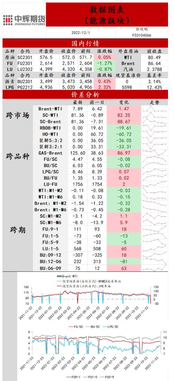 汇通财经APP讯——【能源化工】-原油行情解读:今日内盘原油保持平稳,价格收于572.0元/桶,涨幅为0.05%。消息面:供需:周三一项调查结果显示,OPEC11月原油产量下降,产能为2901万桶/日...