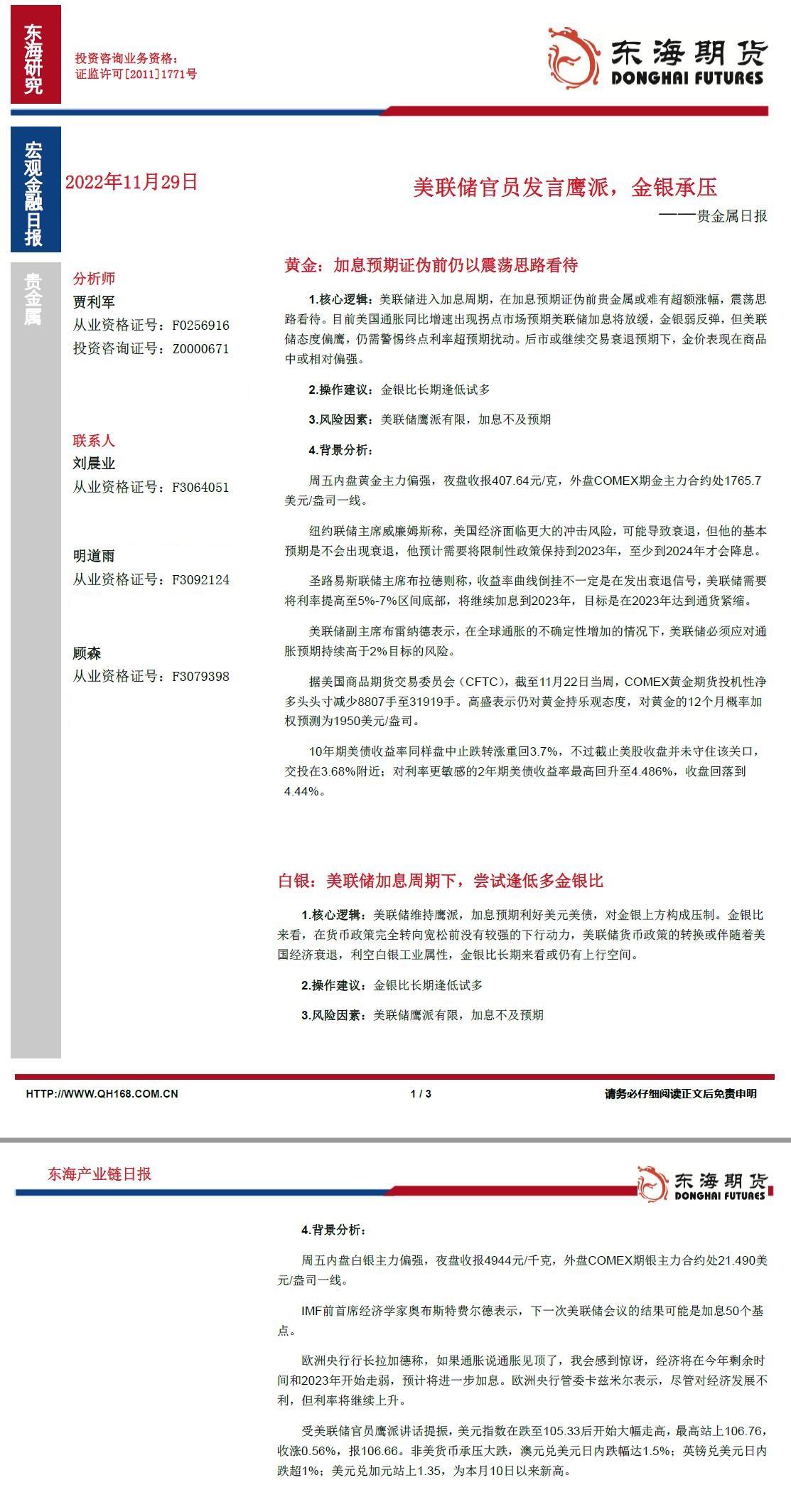 汇通财经APP讯——黄金核心逻辑:美联储进入加息周期,在加息预期证伪前贵金属或难有超额涨幅,震荡思路看待。目前美国通胀同比增速出现拐点市场预期美联储加息将放缓金银弱反弹,但美联储态度偏鹰,仍需警惕终点...