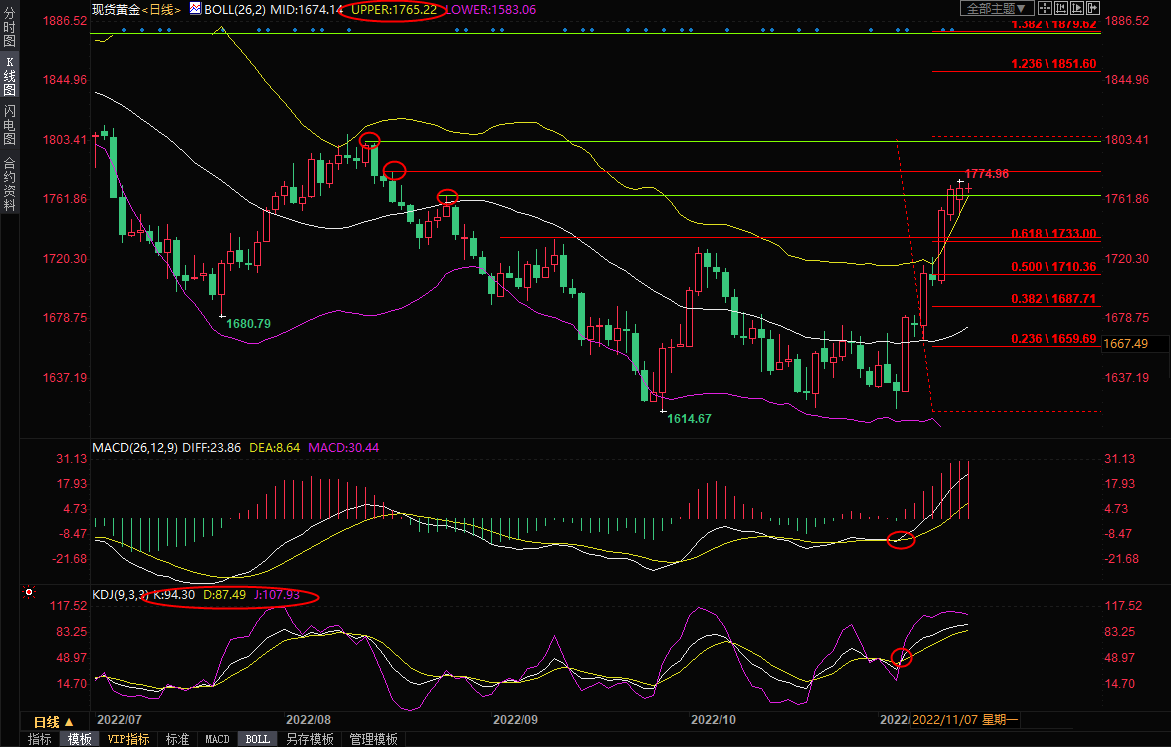 周二(11月15日)亚洲时段,现货黄金高位震荡,目前交投于1770.64美元/盎司,距离隔夜创下的近三个月高点1774.96相去不远,对美联储将放缓加息步伐的预期,仍在给金价提供支撑,投资者目光转向晚...