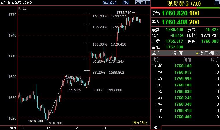 周一(11月14日)亚洲时段,现货黄金低开后震荡走弱,目前交投于1759.02美元/盎司,因此前美联储理事称抗通胀立场没有“软化”,帮助美元和美债收益率反弹,进而令金价承压;虽然中长线已经转向多头,但...
