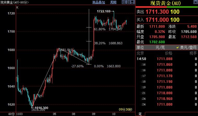 周四(11月10日),国际金价在美指下跌的支撑下重新走高,但在美国通胀数据即将公布前,投资者持谨慎心态,金价波动区间不大。金价后市仍上看1729美元。北京时间14:54,现货黄金上浮0.20%至170...