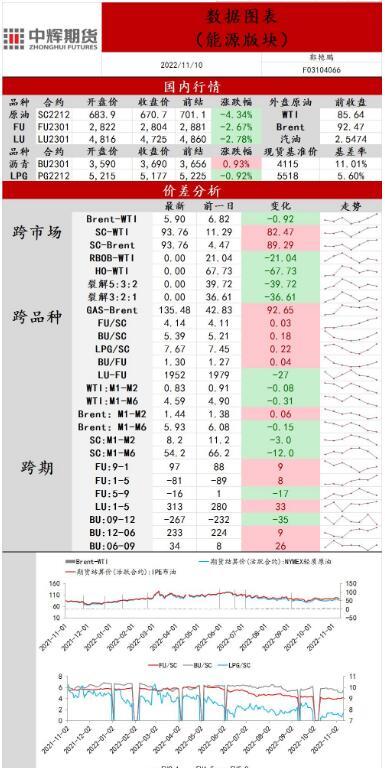 【能源化工】-原油原油行情解读:今日内盘原油价格收于670.7元/桶,降幅为4.34%。消息面:供需:EIA最新报告数据显示,截止11月4日当周美国商业原油库存增加392.5万桶,预期增加136万桶,...