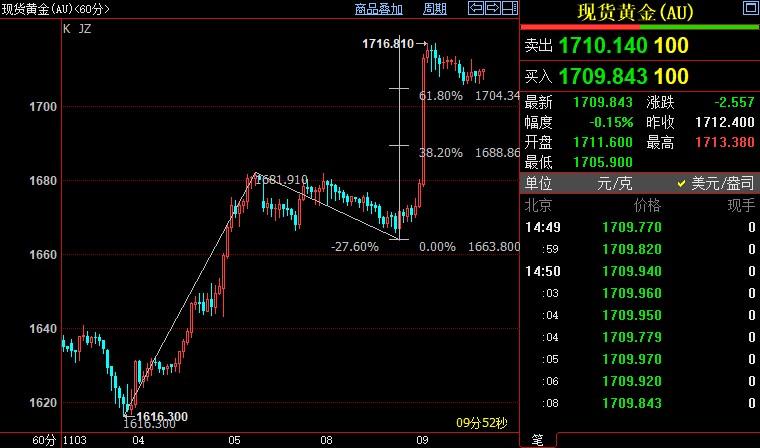 周三(11月9日)亚洲时段,现货黄金窄幅震荡,目前基于1708美元/盎司附近,本交易日无重要经济数据出炉,市场观望情绪较浓,等待周四将出炉的美国10月份CPI数据,尽管隔夜金价大涨,但市场预计美国CP...