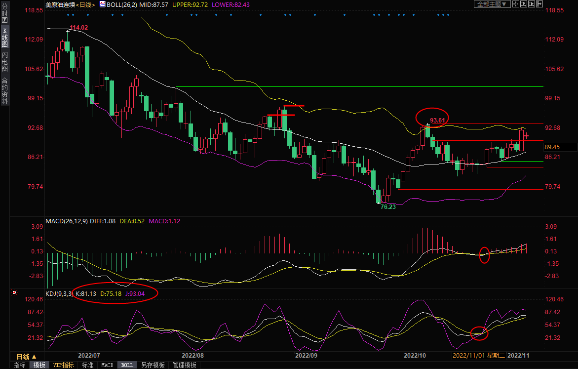 周一(11月7日),国际油价下跌,因全球原油需求继续疲软,但由于欧盟对俄罗斯海运原油的进口禁运将于12月5日开始生效,下游的柴油需求相对偏强,油价下行空间有限。NYMEX后市继续上看94.58美元。北...