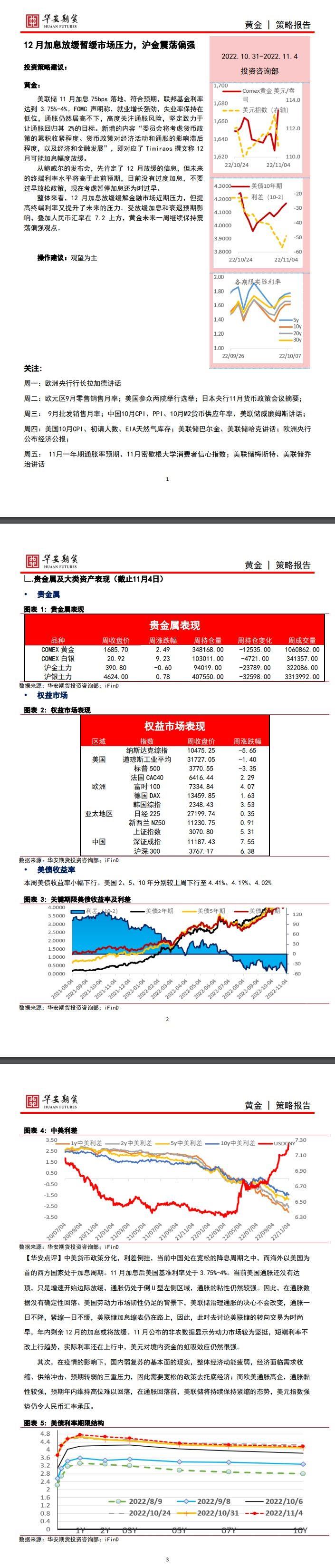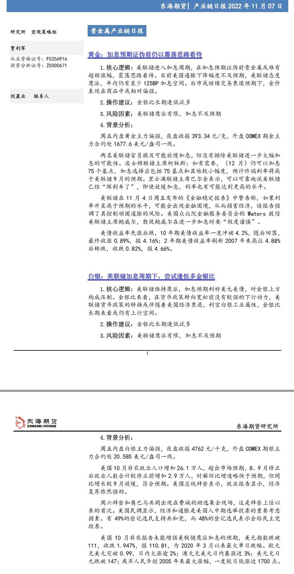 黄金:美联储11月加息75bps落地,符合预期,联邦基金利率达到3.75%-4%。FOMC声明称,就业增长强劲,失业率保持在低位,通胀仍然居高不下,高度关注通胀风险,坚定致力于让通胀回归其2%的目标。...