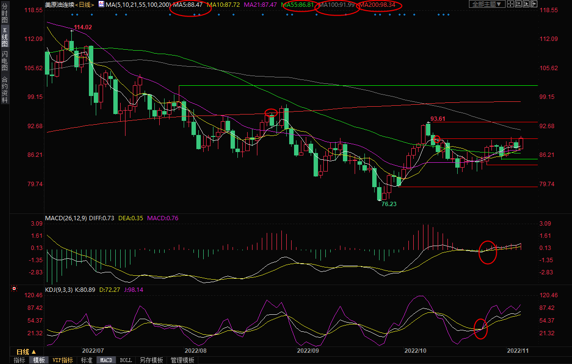 周五(11月4日),国际油价升创10月中旬以来新高,因美元走软利好大宗商品价格。尽管需求疲软可能抑制对能源燃料的需求,但供应紧张无法让多头承认失败。NYMEX原油上看94.58美元。北京时间16:17...