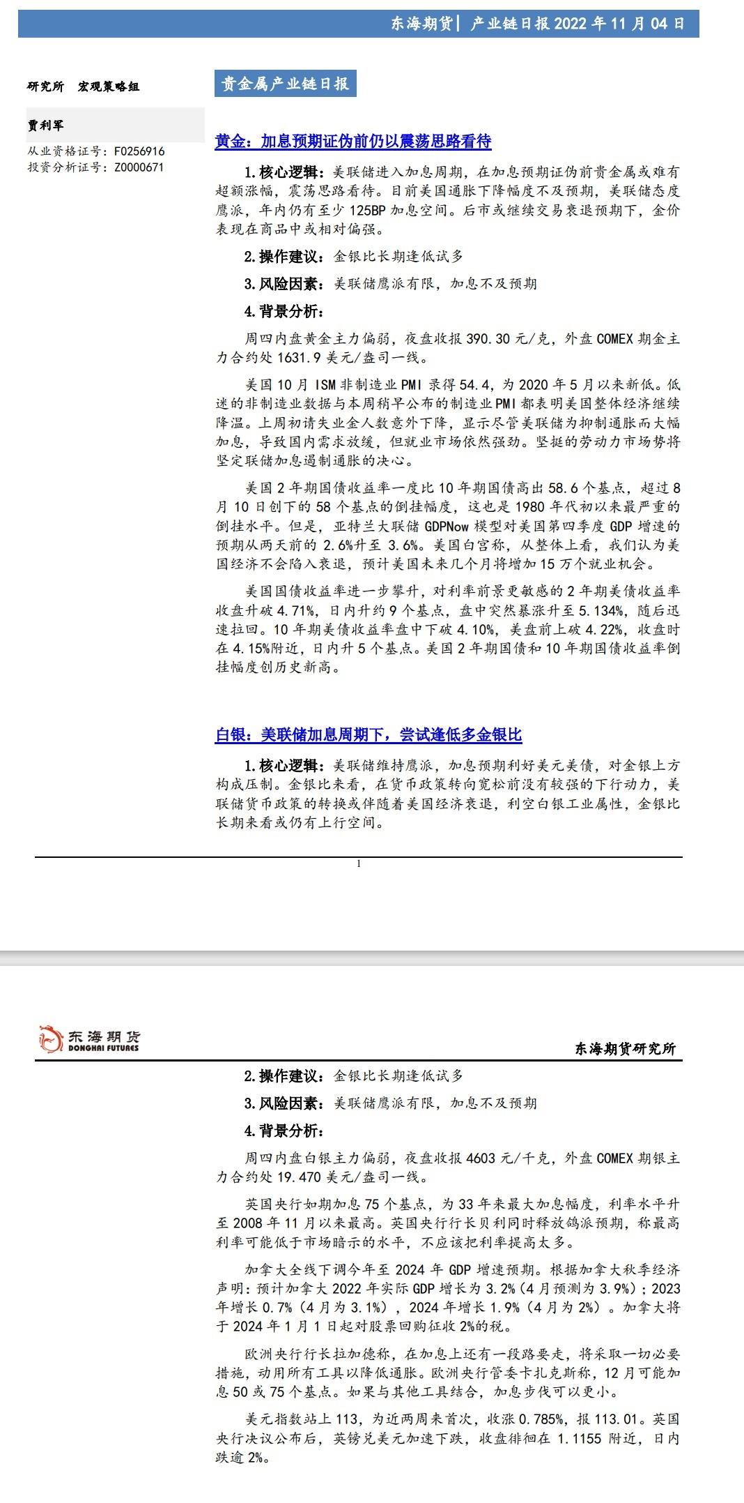 白银:美联储加息周期下,尝试逢低多金银比。黄金:加息预期证伪前仍以震荡思路看待。免责声明: 本报告立足于结合基本面及技术面对市场价格运行趋势及轮廓进行整体判断,提示可能存在的投资风险与投资机会。报告中...