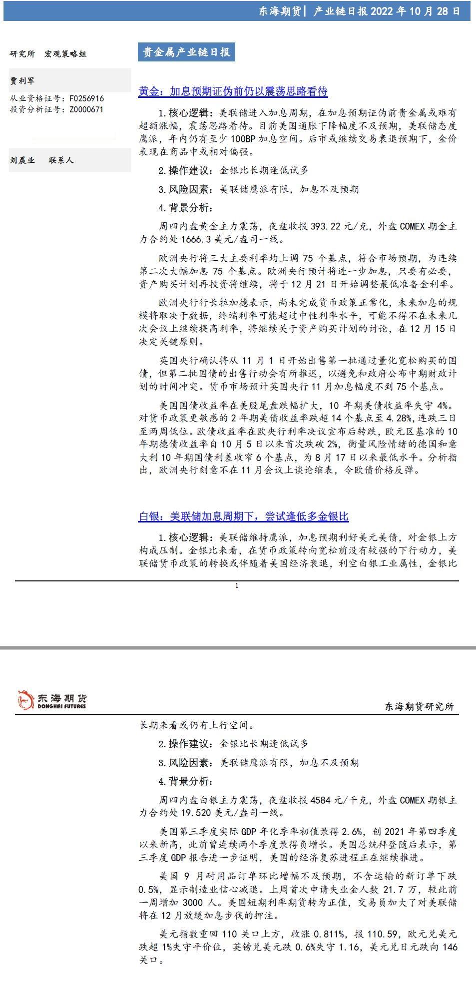 黄金核心逻辑:美联储进入加息周期,在加息预期证伪前贵金属或难有超额涨幅,震荡思路看待。目前美国通胀下降幅度不及预期美联储态度鹰派,年内仍有至少100BP加息空间。后市或继续交易衰退预期下,金价表现在商...