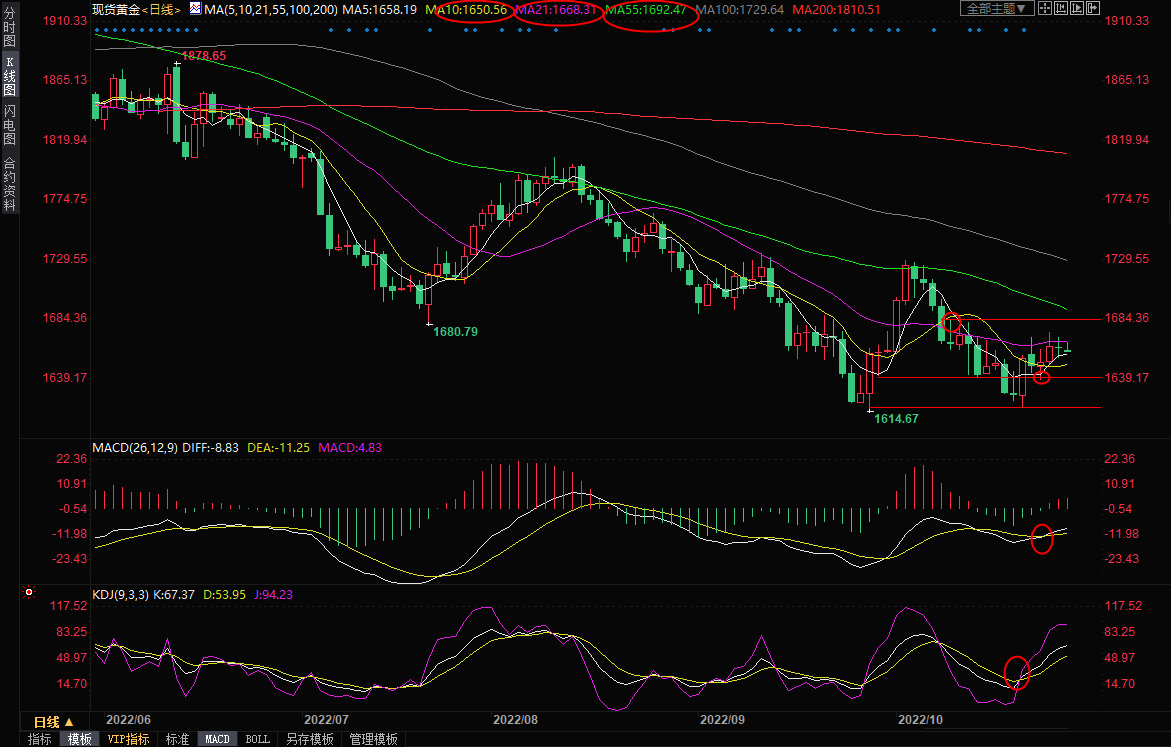 周五(10月28日)亚欧时段,现货黄金窄幅震荡,目前交投于1663.65美元/盎司附近,美国初请失业金人数依然处于低位,欧洲央行如期加息后欧元走弱,美元指数从逾一个月低位反弹,令金价承压;不过,美国需...