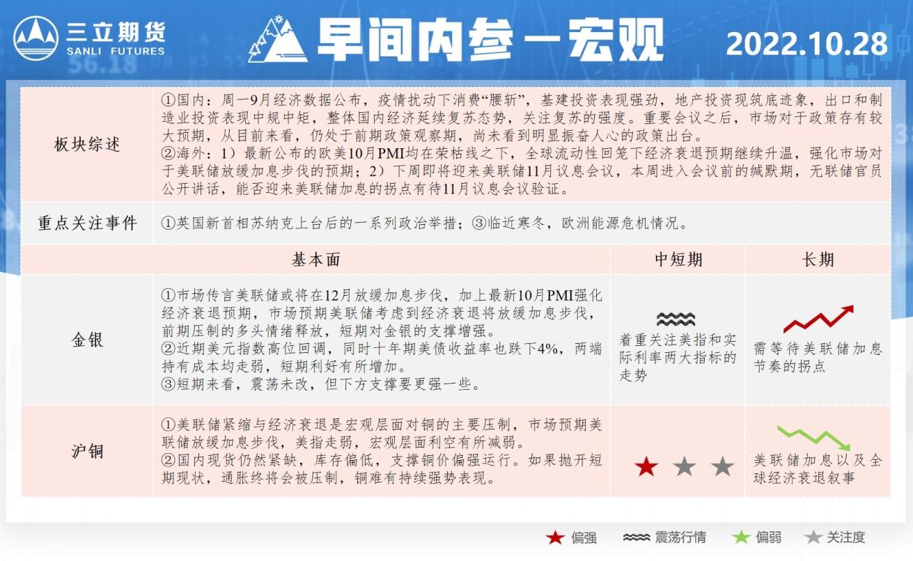 三立期货早间内参显示,金银中短线偏向震荡,着重关注美指和实际利率两大指标走势,长线略微偏多,等待美联储加息节奏拐点;沪铜中短线略微偏多,长线偏空,关注美联储加息和全球衰退叙事。三立期货期货公司授权文本...