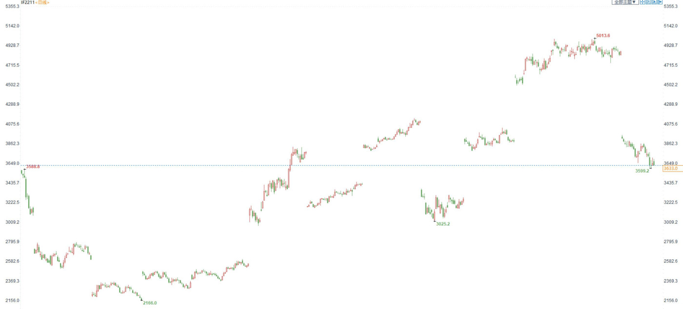 股指期货:上证综指3000点再度得而复失,市场量能再上9000亿元 【今日行情】四大期指涨跌互现。IH2211收盘价为2379.8,收跌0.64%;IF2211收盘价为3633,收跌0.46%;IC2...