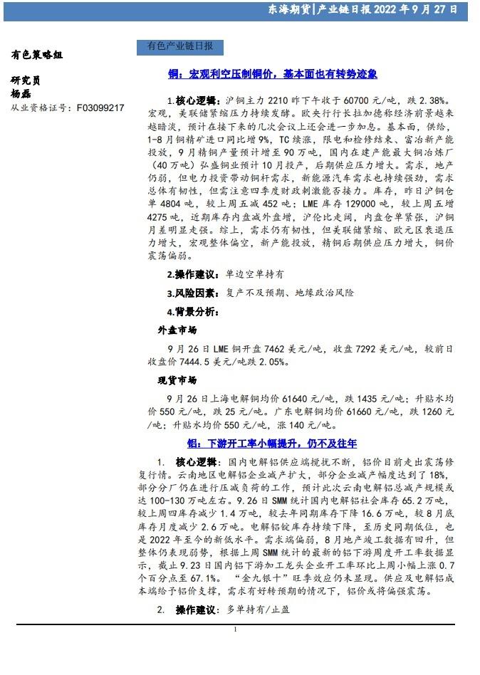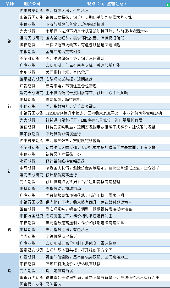 铜风险因素:复产不及预期、地缘政治风险铝风险因素:运输情况,运行产能增量锌风险因素:海外能源危机锡风险因素:矿端供应镍风险因素:印尼镍中间品产量不及预期;地缘政治风险不锈钢风险因素:去库超预期免责声明...