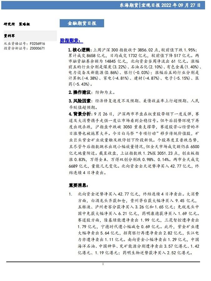 股指期货操作建议:防御为主。国债期货操作建议:暂时观望。免责声明:本报告立足于结合基本面及技术面对市场价格运行趋势及轮廓进行整体判断,提示可能存在的投资风险与投资机会。报告中的信息均源自于公开材料,我...