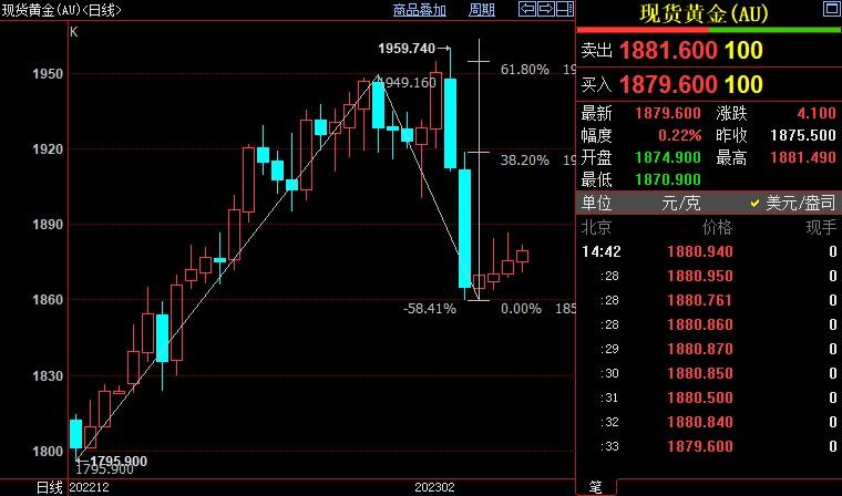 汇通财经APP讯——周四(2月9日),国际金价连续第四个交易日走高,因美元指数重新走软,但由于多位美联储官员表示需要进一步加息以抑制通胀,金价前景依然阴云密布,短线仍上看1896美元。北京时间14:4...