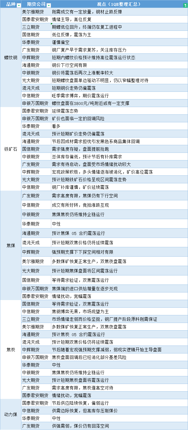 汇通财经APP讯——期货公司观点汇总一张图:2月9日黑色系(螺纹钢、焦煤、焦炭、铁矿石、动力煤等)