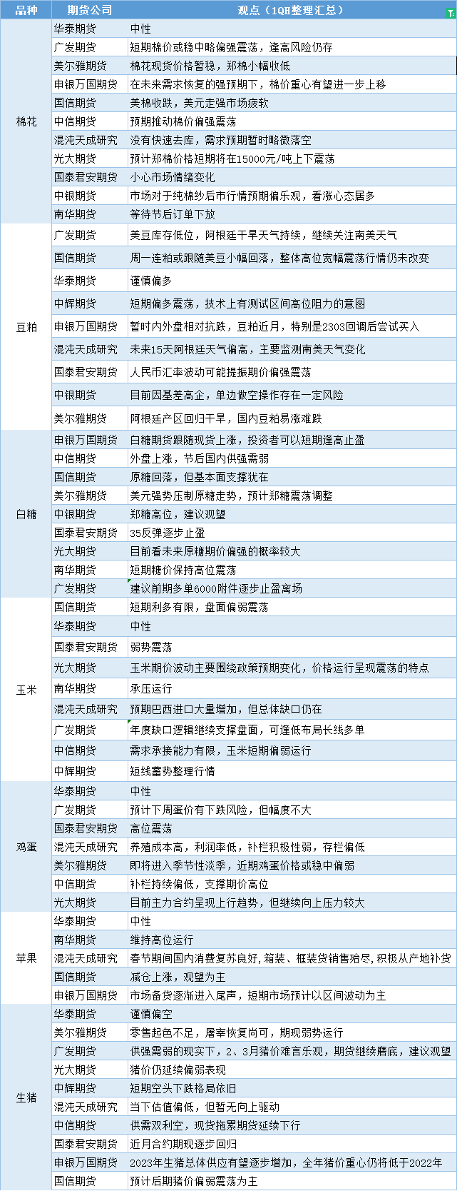 汇通财经APP讯——期货公司观点汇总一张图:2月6日农产品(棉花、豆粕、白糖、玉米、鸡蛋、生猪等)