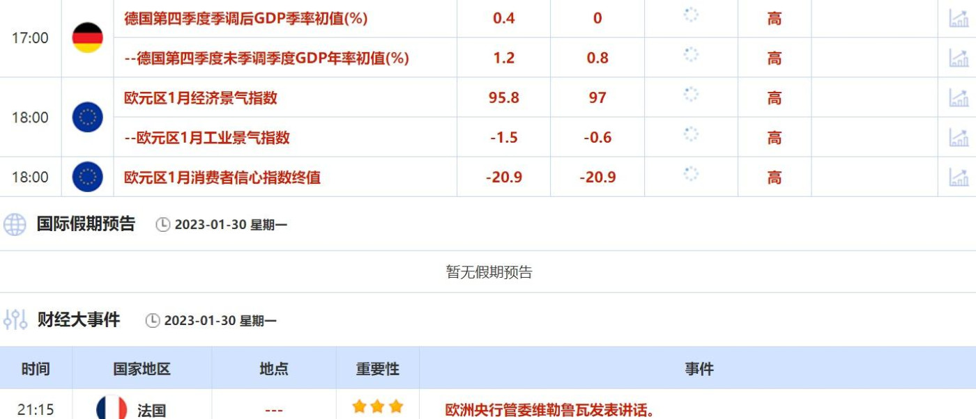 汇通财经APP讯——1月30日,投资者需要关注的重点数据:德国第四季度季调后GDP季率初值,德国第四季度未季调季度GDP年率初值,欧元区1月经济景气指数,欧元区1月工业景气指数和欧元区1月消费者信心指...
