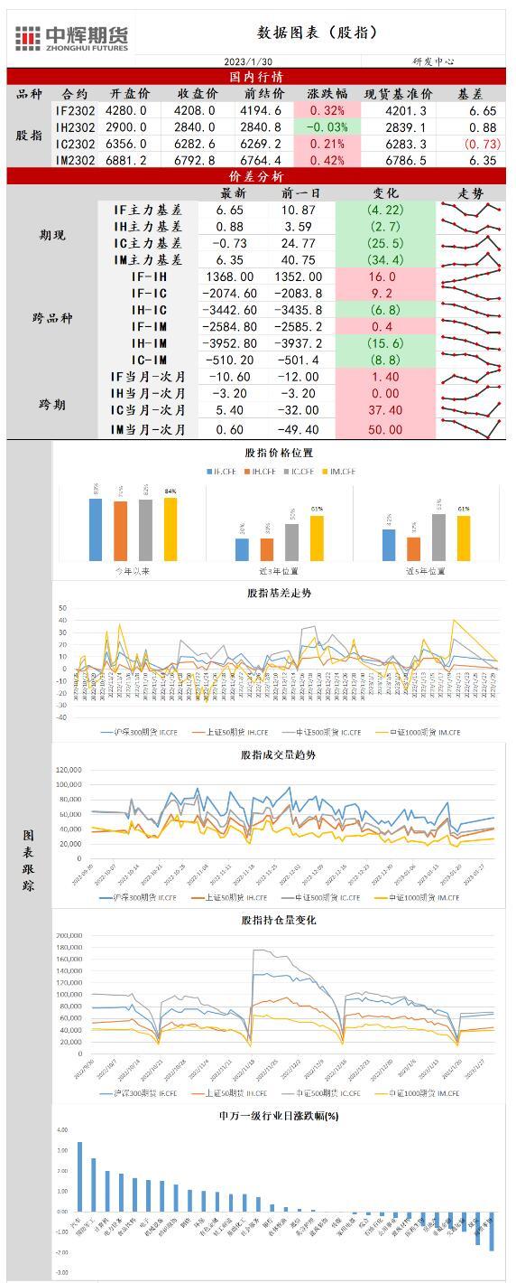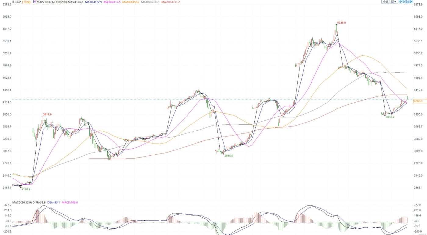 汇通财经APP讯——股指期货:市场开门红,两市成交额再破万亿 【今日涨跌】四大期指涨跌互现。IH2302收盘价为2840.0,收跌0.03%;IF2301收盘价为4208,收涨0.32%;IC2301...