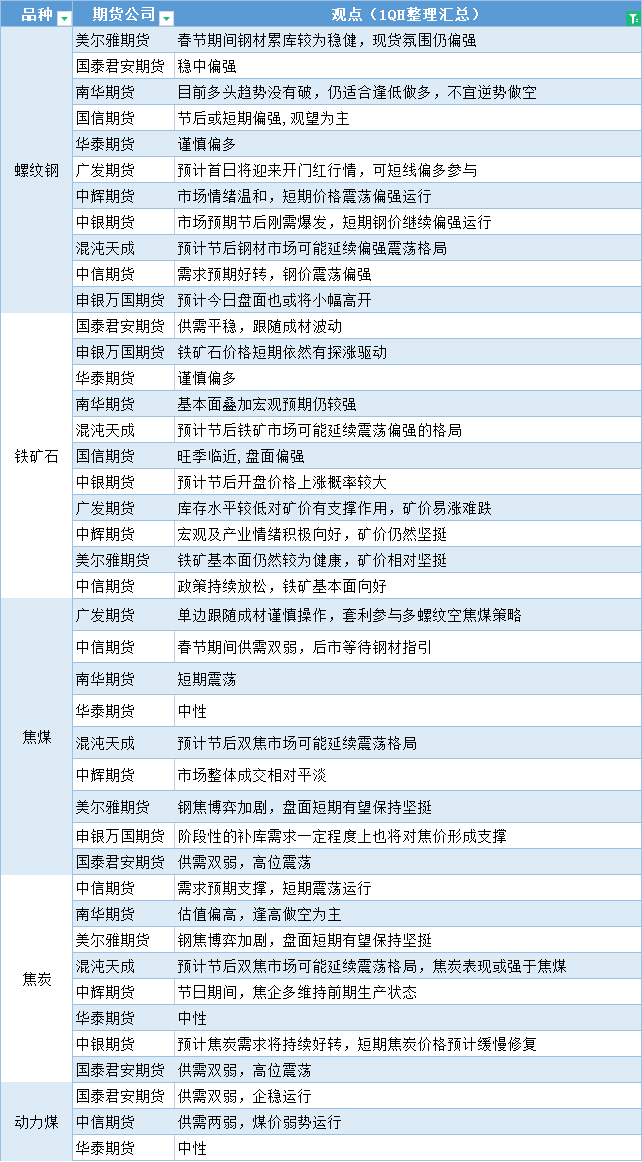 汇通财经APP讯——期货公司观点汇总一张图:1月30日黑色系(螺纹钢、焦煤、焦炭、铁矿石、动力煤等)