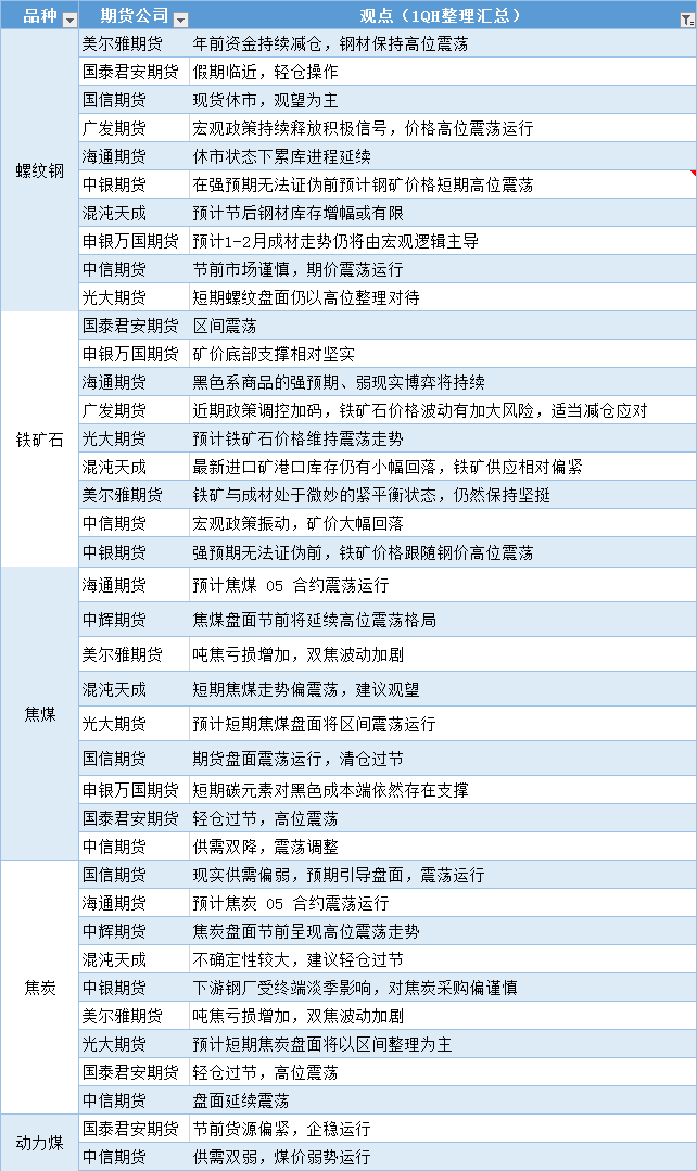 汇通财经APP讯——期货公司观点汇总一张图:1月20日黑色系(螺纹钢、焦煤、焦炭、铁矿石、动力煤等)