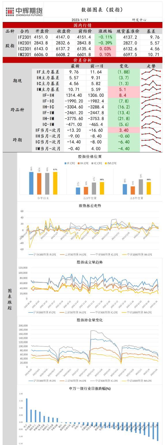 汇通财经APP讯——股指:经济数据疲软,股指横盘整理截止1月17日周二收盘,上证指数跌0.1%,报3224.24,深证成指涨0.13%,报11800.55,创业板指涨0.24%,报2545.55。基本...