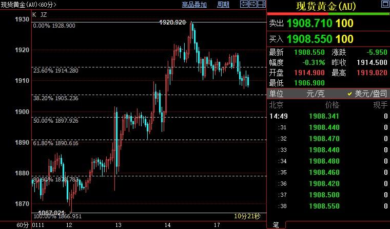 汇通财经APP讯——周二(1月17日)亚洲时段,现货黄金震荡微跌,目前交投于1910美元/盎司附近,美元从近七个月半月低点附近企稳反弹,临金价承压回调,由于上一交易日K线录得十字星,如果本交易日录得中...