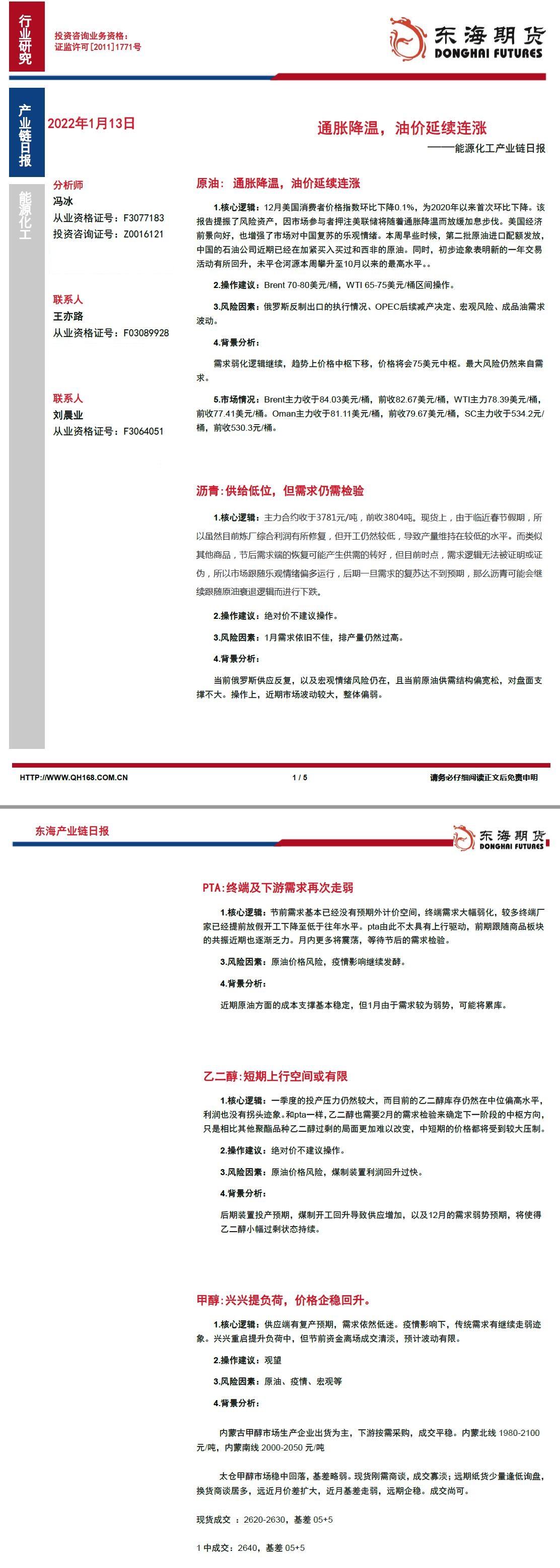 汇通财经APP讯——原油:通胀降温,油价延续连涨沥青:供给低位,但需求仍需检验PTA:终端及下游需求再次走弱乙二醇:短期上行空间或有限甲醇:兴兴提负荷,价格企稳回升L:估值偏高,有回落风险PP:需求走...