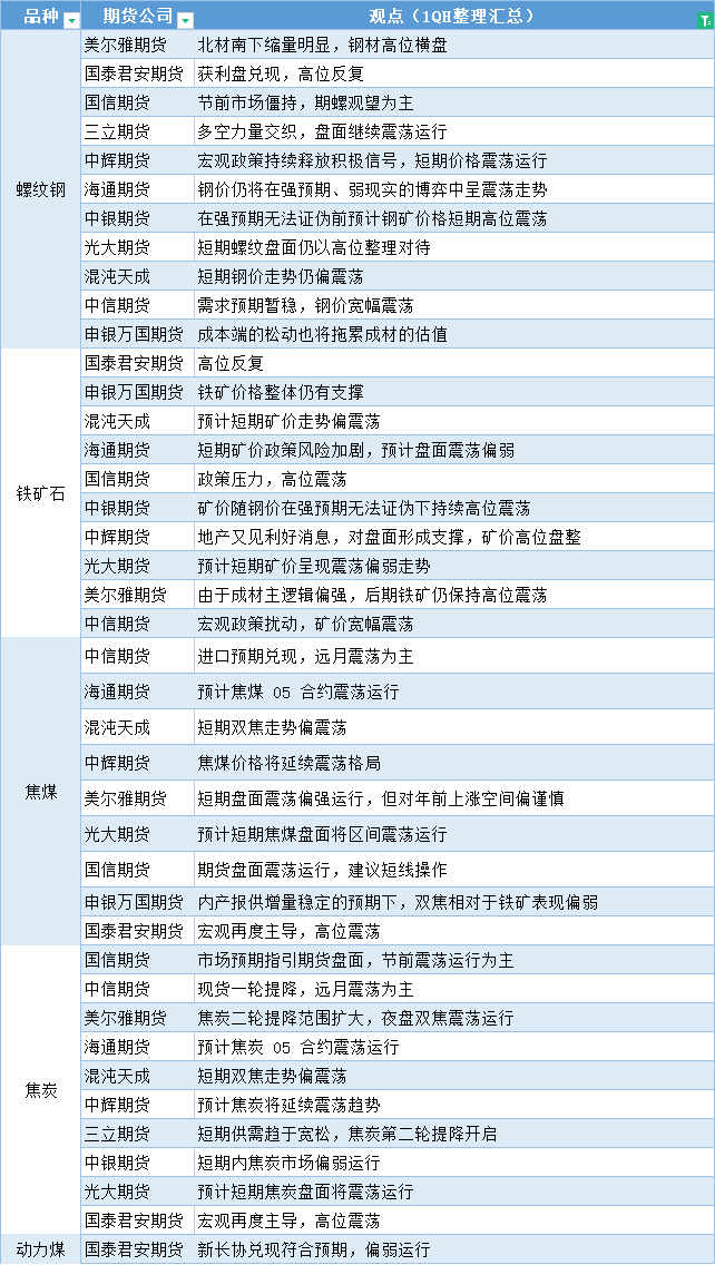 汇通财经APP讯——期货公司观点汇总一张图:1月10日黑色系(螺纹钢、焦煤、焦炭、铁矿石、动力煤等)