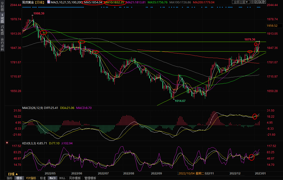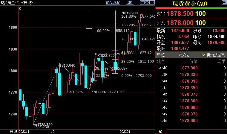 汇通财经APP讯——周一(1月9日)亚洲时段,现货黄金震荡上涨,一度创近八个月高点至1879.36美元/盎司,因上周美国经济数据表现不佳,市场美联储将缩小1月份加息幅度,美债收益率跌至近两周低位,美元...