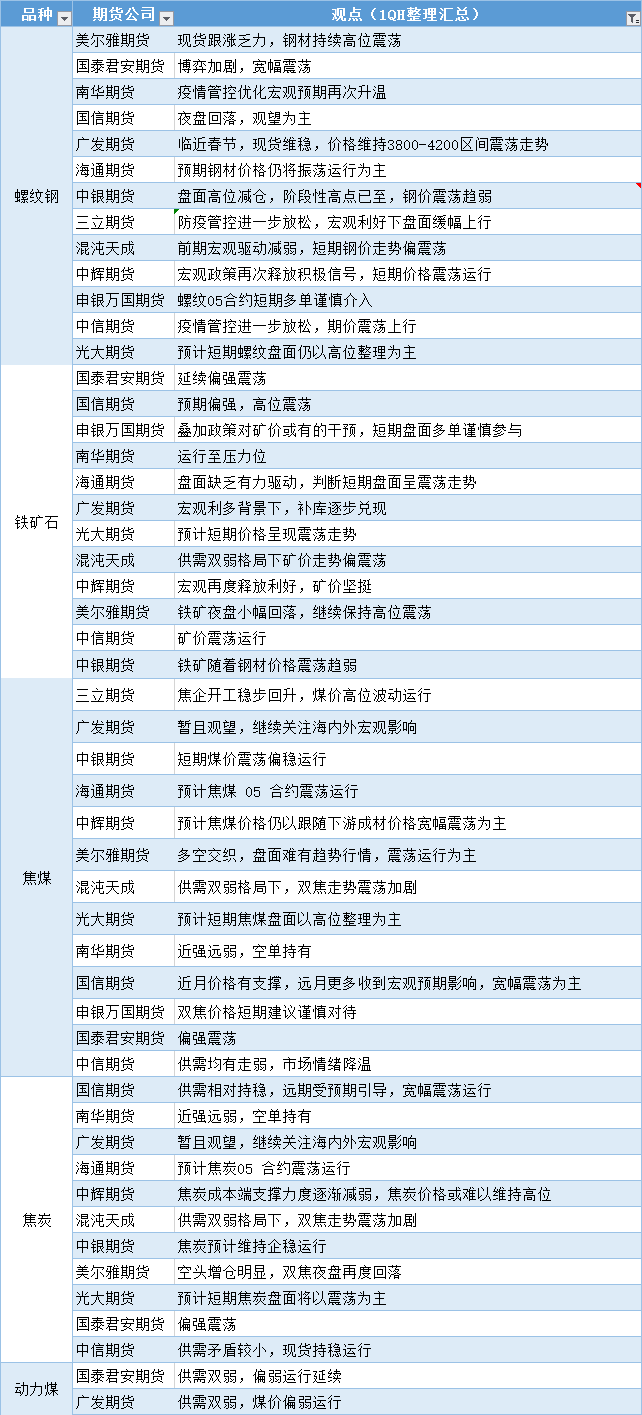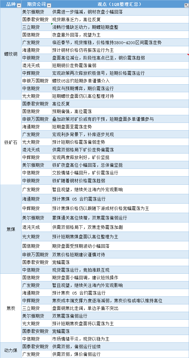 汇通财经APP讯——期货公司观点汇总一张图:12月28日黑色系(螺纹钢、焦煤、焦炭、铁矿石、动力煤等)