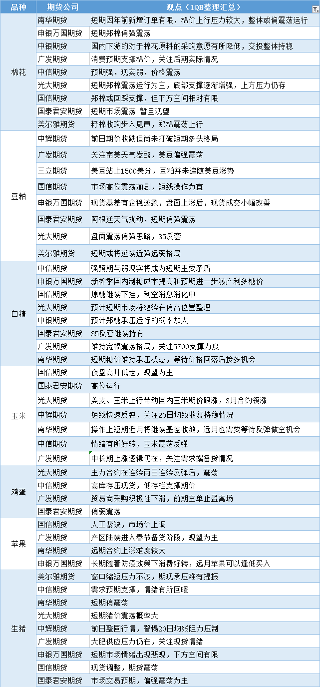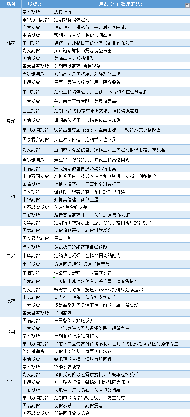 汇通财经APP讯——期货公司观点汇总一张图:12月28日农产品(棉花、豆粕、白糖、玉米、鸡蛋、生猪等)