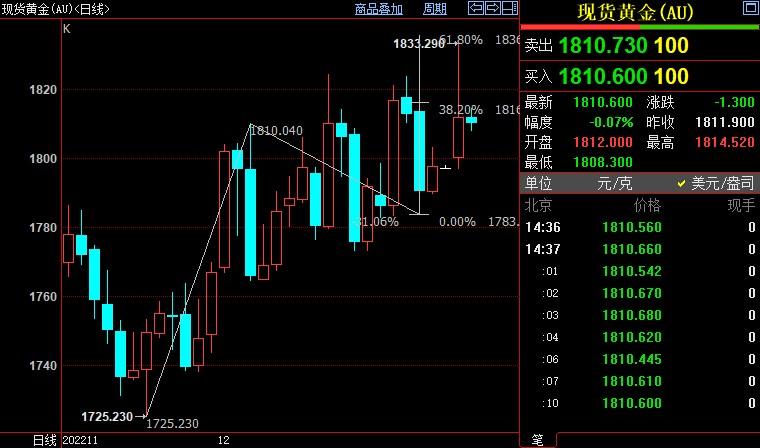 汇通财经APP讯——周三(12月8日)亚洲时段,现货黄金震荡微跌,目前交投于1810美元/盎司附近,金价受到强势美债收益率的压制,隔夜美国10年期国债收益率一度创近一个半月新高至3.862%;不过,美...