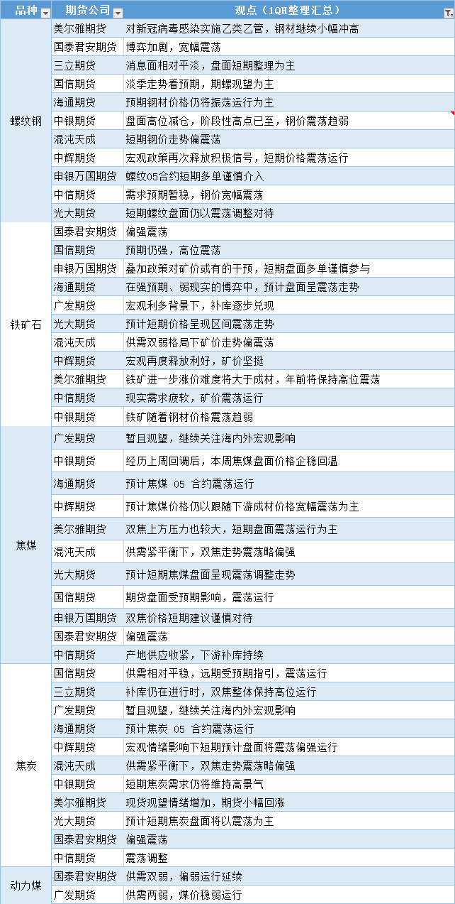 汇通财经APP讯——期货公司观点汇总一张图:12月27日黑色系(螺纹钢、焦煤、焦炭、铁矿石、动力煤等)