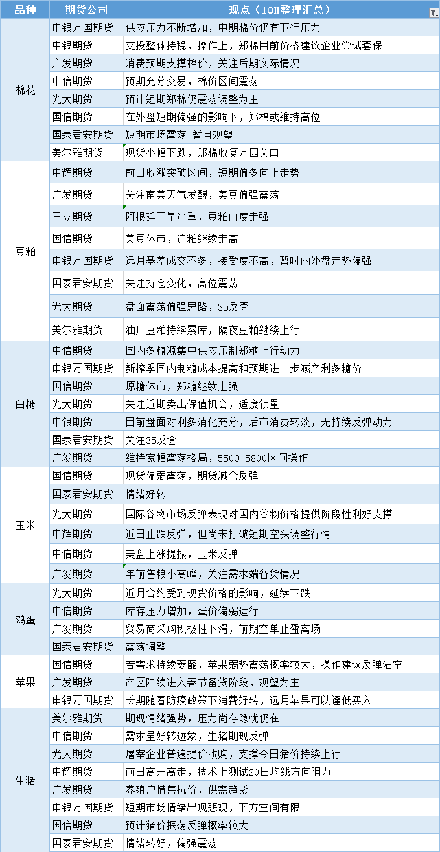 汇通财经APP讯——期货公司观点汇总一张图:12月27日农产品(棉花、豆粕、白糖、玉米、鸡蛋、生猪等)