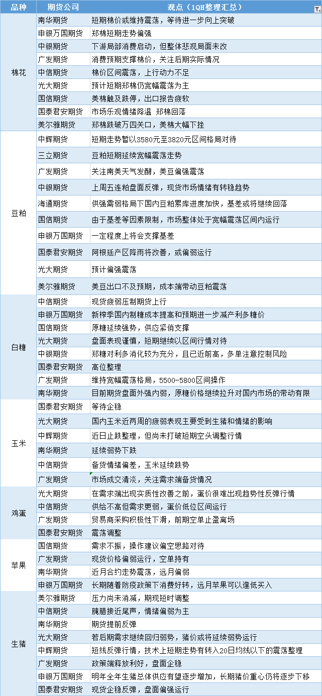 汇通财经APP讯——期货公司观点汇总一张图:12月23日农产品(棉花、豆粕、白糖、玉米、鸡蛋、生猪等)