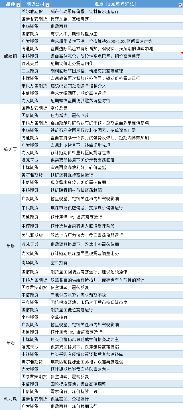 汇通财经APP讯——期货公司观点汇总一张图:12月23日黑色系(螺纹钢、焦煤、焦炭、铁矿石、动力煤等)