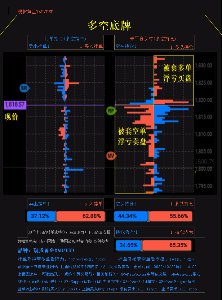 汇通财经APP讯——黄金、七大货币对的“多空底牌”一览(2022/12/22周四)。国际现货黄金挂单及被套多单看阻力:1819-1820、1833;挂单及被套空单看支撑:1816、1800。外汇货币对...