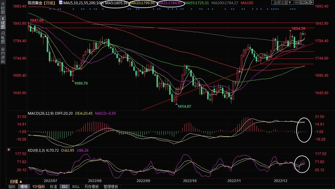 汇通财经APP讯——周四(12月22日)亚洲时段,现货黄金窄幅震荡,目前交投于1814美元/盎司附近,市场参与者在等待经济数据的进一步指引。本交易日将迎来美国初请失业金人数变动和美国三季度GDP终值,...
