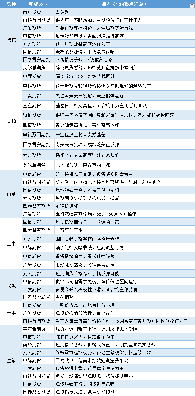 汇通财经APP讯——期货公司观点汇总一张图:12月21日农产品(棉花、豆粕、白糖、玉米、鸡蛋、生猪等)