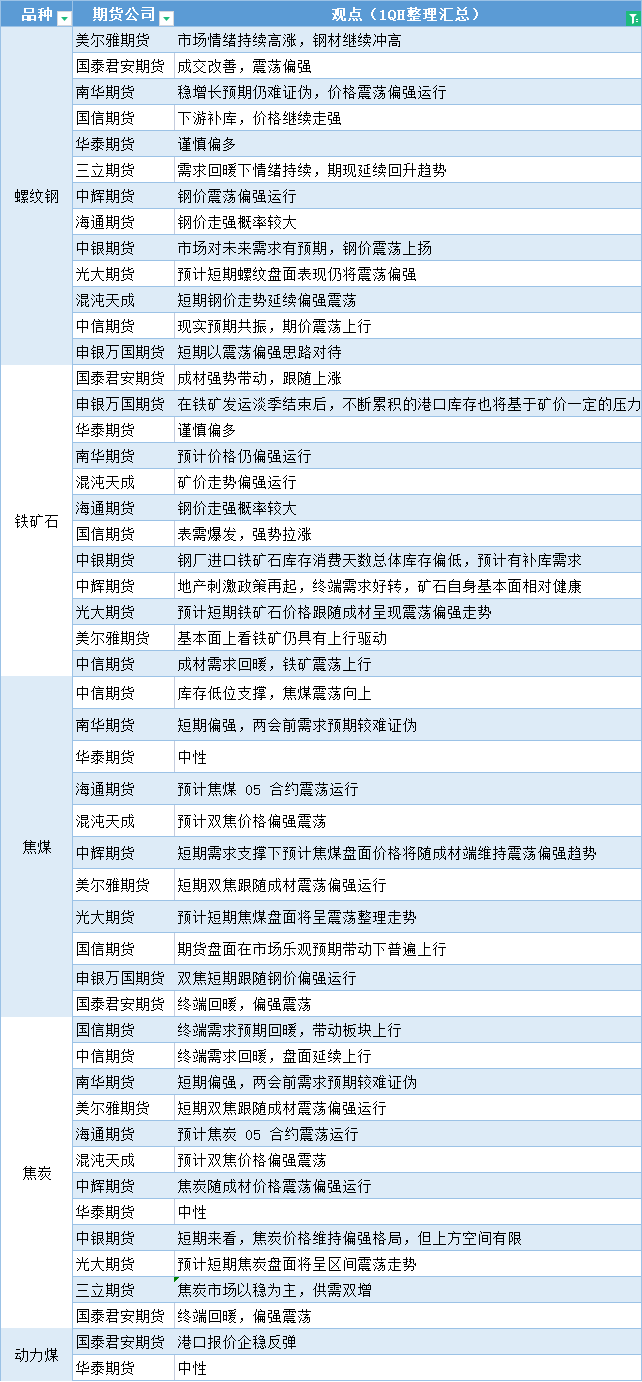 汇通财经APP讯——期货公司观点汇总一张图:2月21日黑色系(螺纹钢、焦煤、焦炭、铁矿石、动力煤等)