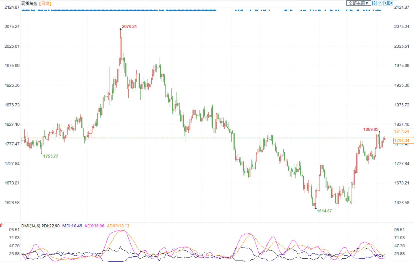 汇通财经APP讯——周五美市尾盘,现货黄金收报1797.03美元/盎司,上涨8.17美元或0.46%,日内最高触及1806.03美元/盎司,最低触及1788.35美元/盎司。美国劳工部上周五公布,由于...