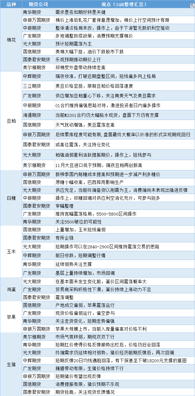 汇通财经APP讯——期货公司观点汇总一张图:12月8日农产品(棉花、豆粕、白糖、玉米、鸡蛋、生猪等)