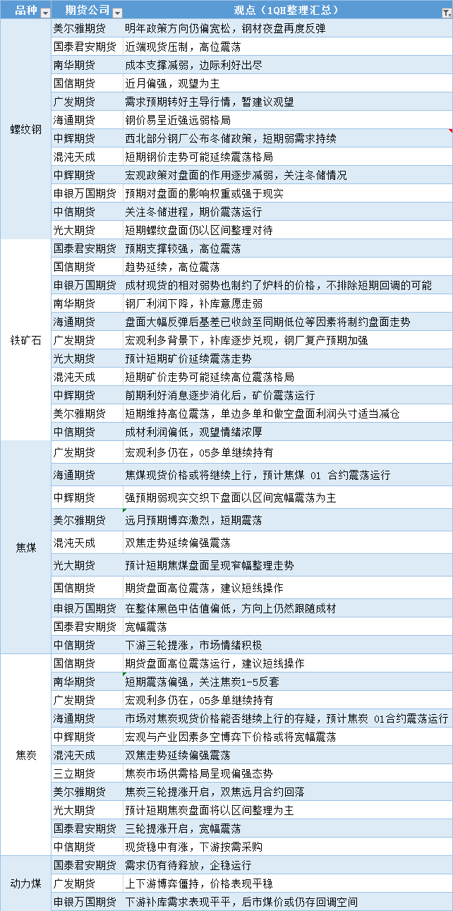 汇通财经APP讯——期货公司观点汇总一张图:12月8日黑色系(螺纹钢、焦煤、焦炭、铁矿石、动力煤等)